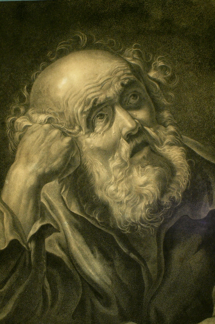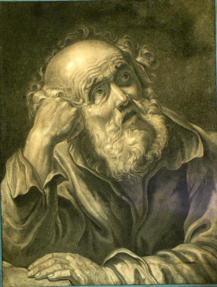 Disegno a carboncino raffigurante un busto di uomo barbuto. E' il ritratto di un pensatore, forse di un filosofo e notevole è l'espressione intensa e viva che l'artista ha saputo trasmettere nell'opera. Reca, in basso a destra la firma dell'autore Louis Cogniet. Francia, fine del XVIII° secolo. E' consevato sottovetro nella cornice coeva laccata e perlinata.