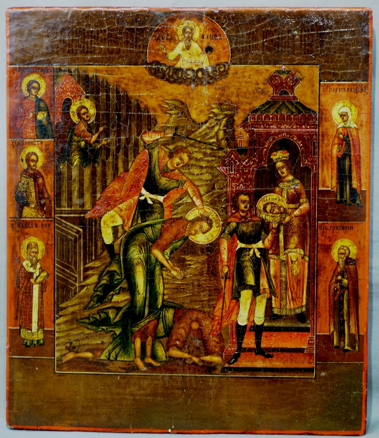 Antica icona russa raffigurante il martirio di san Giovanni. E' di ottima qualità ed in perfetto stato di conservazione. Russia, fine del XVIII° secolo. Cm. 30 x 26 la tavola. CD(PX7E9MWB4E4TER)
